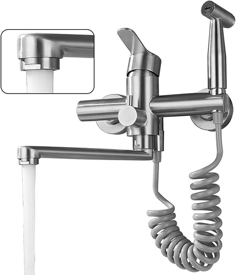 Sjqka In Wand Typ Heisser Und Kalter Wasserhahn 304 Edelstahl Kuchenspulen Waschbecken Rotierende Faltbare Wasserhahn Wand Montiert Amazon De Kuche Haushalt