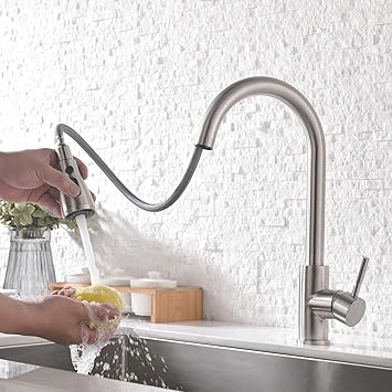Gimili Wasserhahn Kuche Armatur Mit 360 Drehbar Ausziehbar Kuchenarmatur Einhand Spultischbattrie Mischbarrrie Fur Kuchen Spule Nickel Geburstet Amazon De Baumarkt