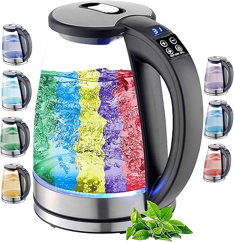 Amazon De Glas Wasserkocher 1 8 Liter 2200 Watt Edelstahl Mit Temperaturwahl Teekocher 100 Bpa Frei Warmhaltefunktion Led Beleuchtung Im Farbwechsel Temperatureinstellung 40 C 100 C