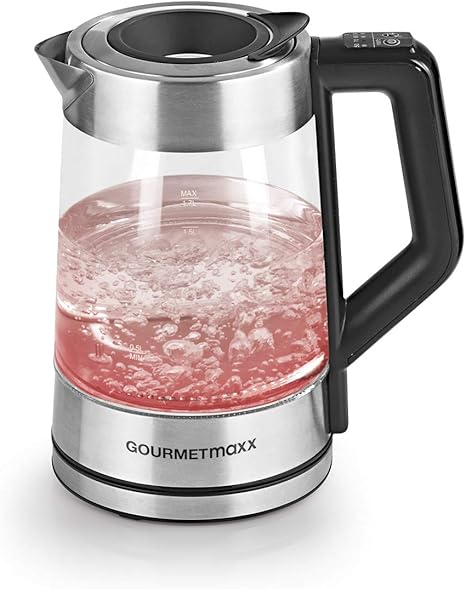 Amazon De Gourmetmaxx Glas Wasserkocher Mit Temperatureinstellung Teekocher Mit Led Beleuchtung Und Intelligenter Offnung Zum Befullen 1 7 Liter 2200w Edelstahl Schwarz