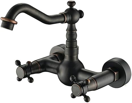 Wandmontage Schwarz Kuche Spule Wasserhahn Nostalgie 2 Loch 360 Schwenkbar Mischbatterie Retro 2 Griffe Kupfer Kuchenarmatur Landhaus Messing Wandarmatur Spultischarmatur Mischbatterie Bronze Amazon De Kuche Haushalt