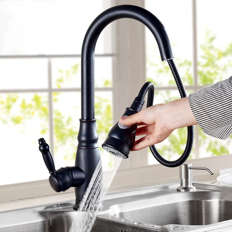 Dhl Schwarz Antiken Wasserhahn Messing Retro Kuche Pull Out Sink Mixer Wasserhahne Heisser Und Kalten Wasserhahn Kf866 Sink Mixer Kitchen Pull Out Faucetmixer Kitchen Taps Aliexpress