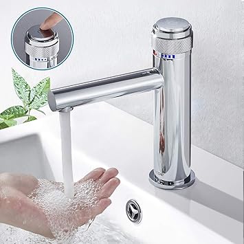Bonade Knopfdruck Wasserhahn Bad Waschtischarmatur Armatur Mit Knopf Zum An Und Ausschalten Mischbatterie Fur Bad Waschbecken Waschtisch Aus Messing Chrom Amazon De Baumarkt